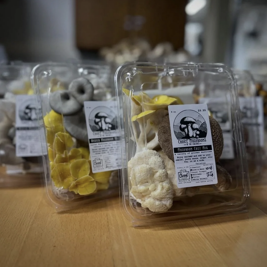 Find Chesed Farms mushrooms in produce section by the bread machine.